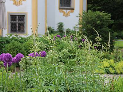 Aufgabe: Gestaltung von Pflanzungen mit zeitgenössischem Charakter in historischer Umgebung. Pflanzplanung in mehreren Etappen im Innenhof der Klinik und beim sogenannten Ententeich als Bestandteile des Entwicklungskonzeptes.